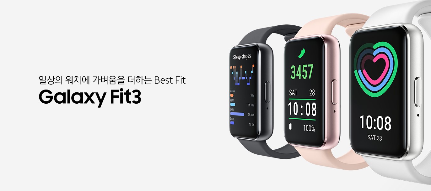 가볍고 슬림한 디자인에 최대 13일 지속되는 배터리, 다양한 건강 기능까지 갖춘 갤럭시 핏3로 더 건강한 일상을 시작해보세요.