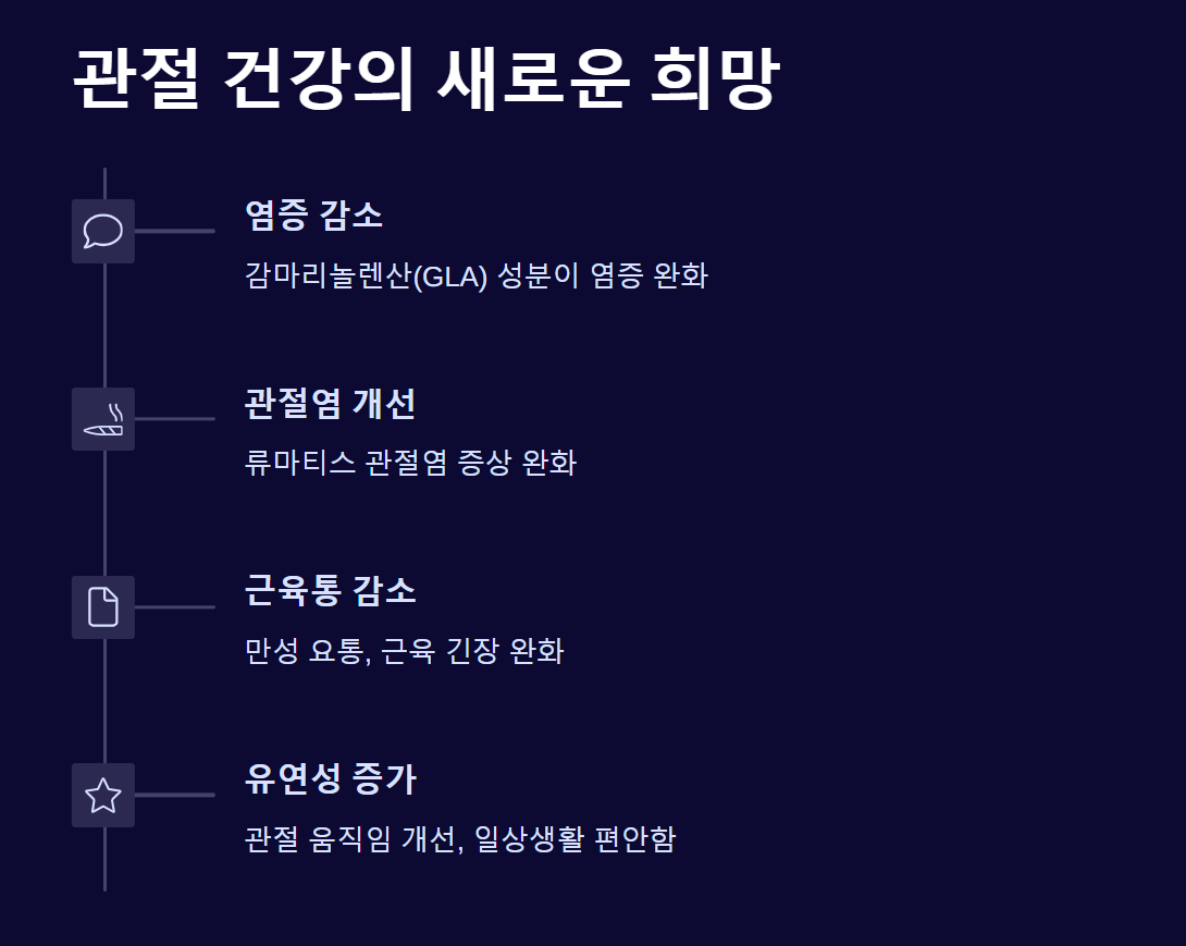 매일 꾸준히 사용할 때 효과가 나타나므로, 오늘부터 시작해 보세요. 관절 통증이 줄어들고, 피부가 촉촉해지고, 전반적인 건강이 개선되는 변화를 느끼실 수 있을 겁니다.