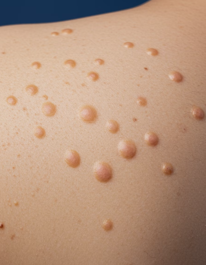 두더지 같은 작은 혹이 몸에 여러 개 생겨났다면 신경섬유종을 의심해봐야 합니다. 신경섬유종은 피부 아래 신경 조직에서 발생하는 양성 종양으로, 유전적 요인이나 특정 질환과 관련이 있을 수 있습니다.