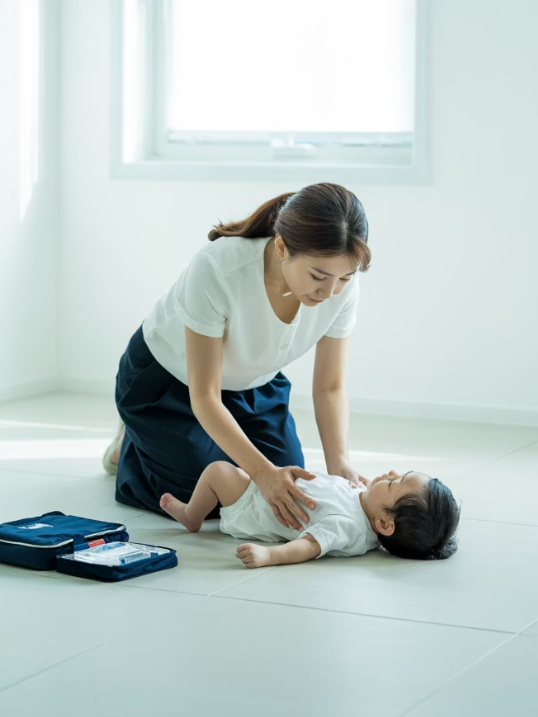 - 아기 상태 확인하기: 아기가 갑자기 기침을 심하게 하거나, 숨을 쉬지 못하고 얼굴이 파랗게 변한다면 즉시 키트를 준비합니다.