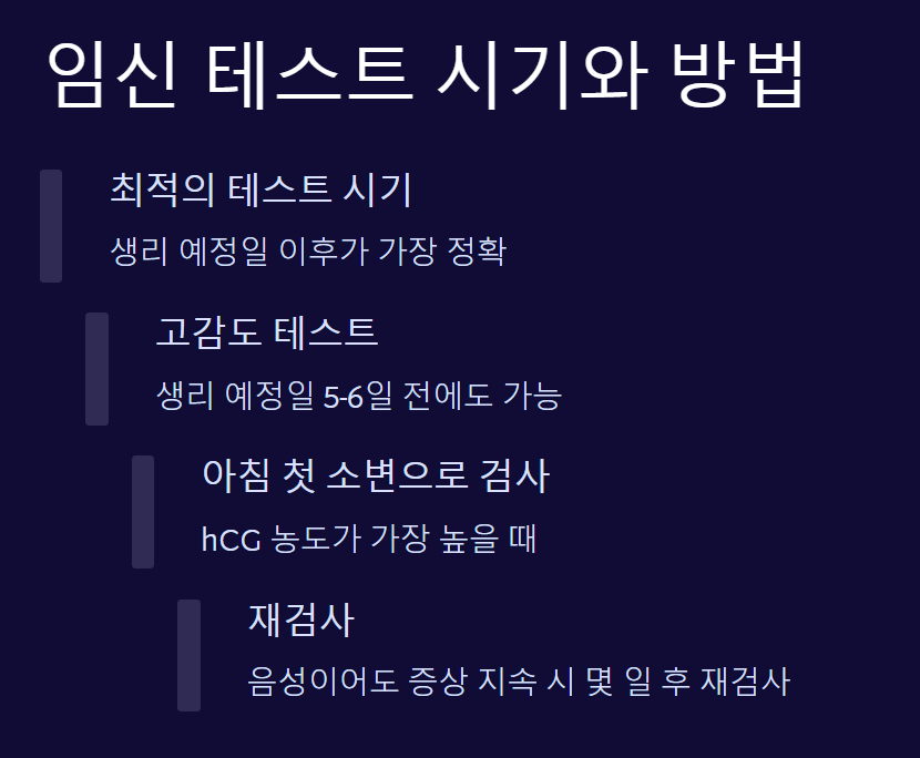 임신이 의심된다면 언제 테스트를 해야 할까요? 가장 정확한 결과를 얻으려면 생리 예정일이 지난 후에 임신 테스트를 하는 것이 좋습니다.